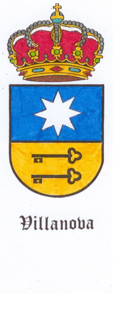 El escudo de Villanova es cuadrilongo de base circular, cortado.