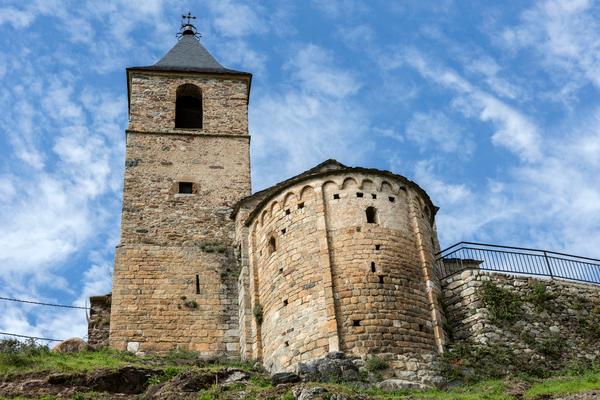Debido a la diferencia del aparejo y la decoración pueden distinguirse claramente tres zonas: el ábside y la capilla sur serían las zonas más antiguas, siguiendo modelos románicos lombardos; algo más tardíamente se construiría el resto de la iglesia; por último, en el siglo XVI se concluiría la torre sobre la capilla citada, se abriría la capilla norte y se construiría el pórtico y la actual portada.